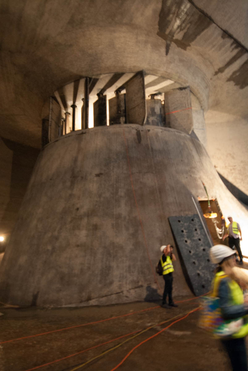 Wir fuhren mit einem Korb zur Turbine hinunter und sahen die unglaublichen Dimensionen einer Kaplanturbine und den Raum in dem das Wasser durchströmt.